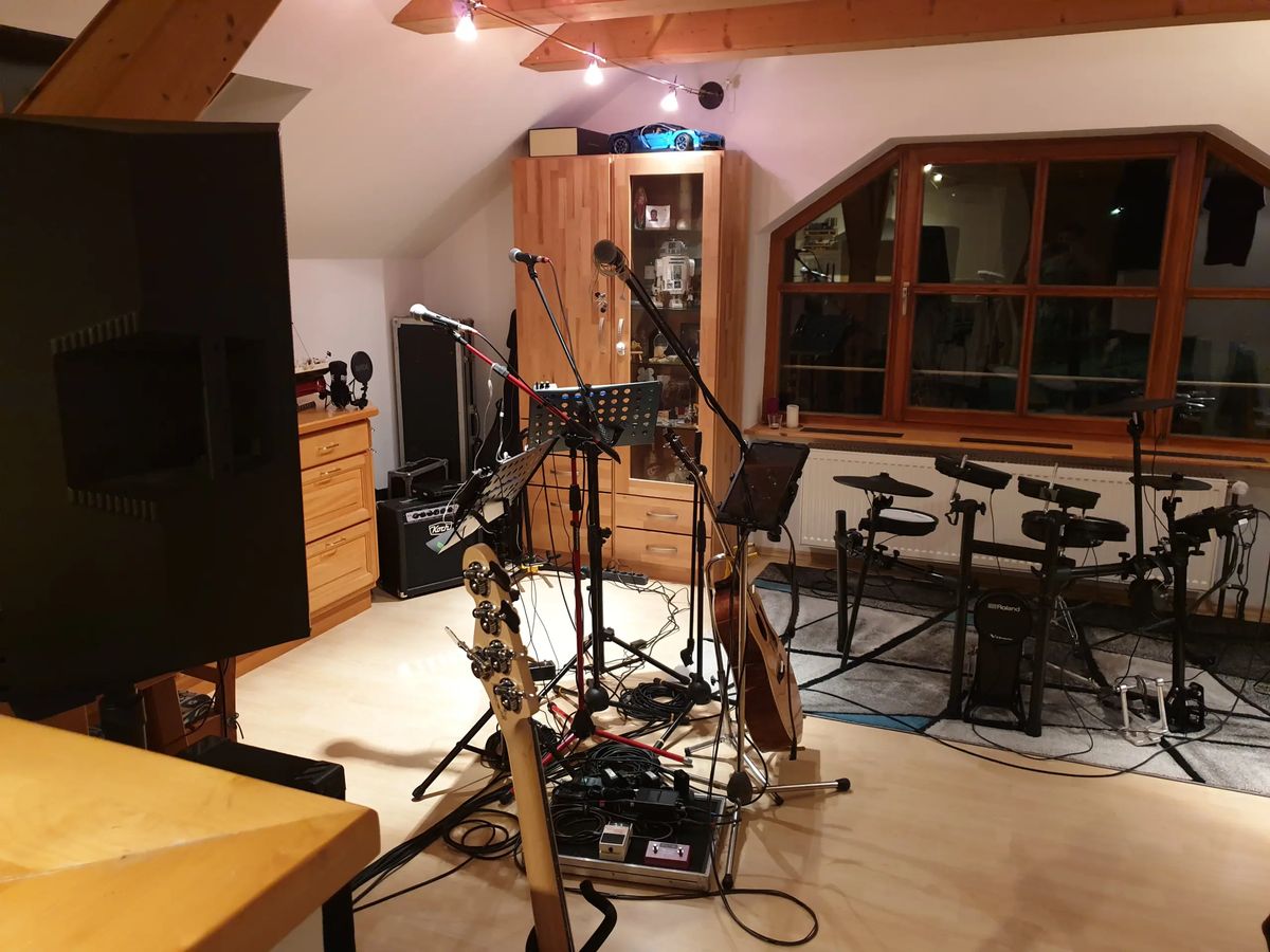 Warum das also nicht alles in eine Geschichte packen und raus in die Welt tragen. Menschen eine Freude machen, wenn es um deren besondere Anlässe geht und dabei auch von unseren besonderen Momenten erzählen. Wie dieses verrückte Jahr 2023, in dem wir keinen Probenraum gefunden haben, unsere Kohle in einen Kessel geworfen haben, um technisch aufzurüsten und in Folge dessen mein Esszimmer zu unserer Musikerhöhle umgebaut haben.